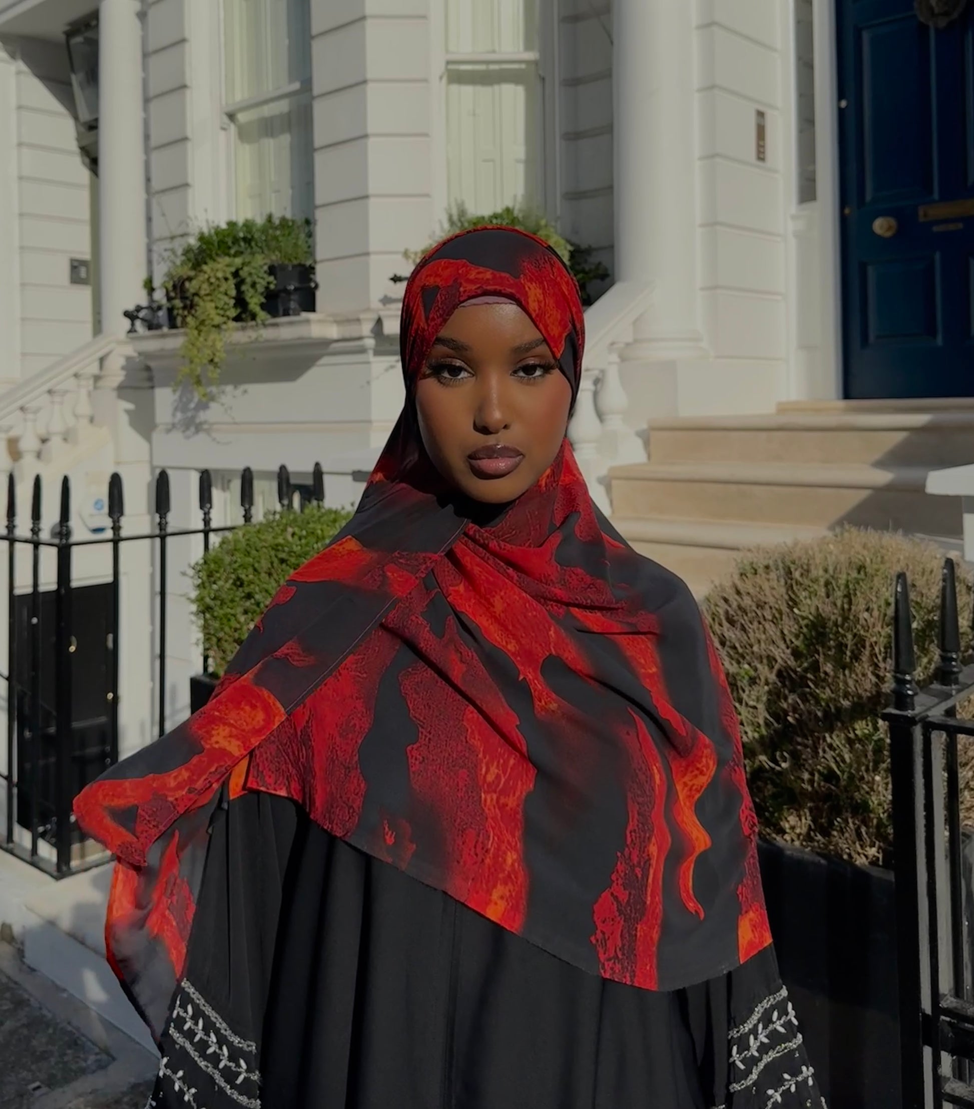 Embrace the fiery elegance of the Blaze Hijab and let its bold hues elevate your style with unmatched grace.